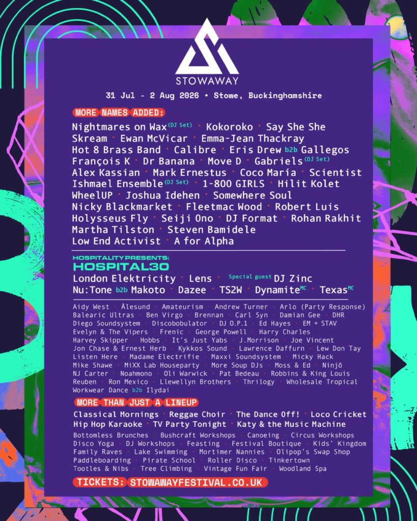 Stowaway Festival, one of the UK’s fastest-growing music festivals, has announced the line-up for this summer’s 5th birthday edition. An independent, family-friendly festival, Stowaway is happening over the weekend of July 31st – August 2nd 2026 in idyllic surroundings near Stowe, north Buckinghamshire.